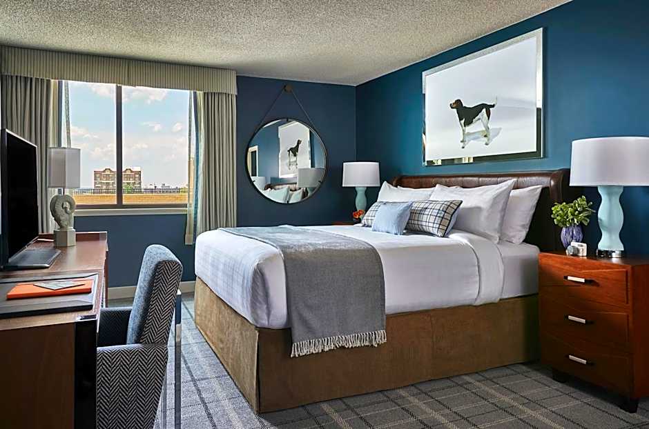 This Two-Bedroom Suite features two connecting bedrooms with an private bathroom in each. One bedroom has a king bed, work station and TV. The second bedroom is fitted with bunk beds and a sofa bed. A sitting area with a second TV is offered as well.