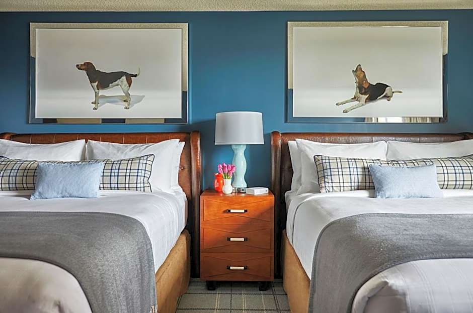 Outfitted with two queen beds, these rooms include a desk and a seating area.