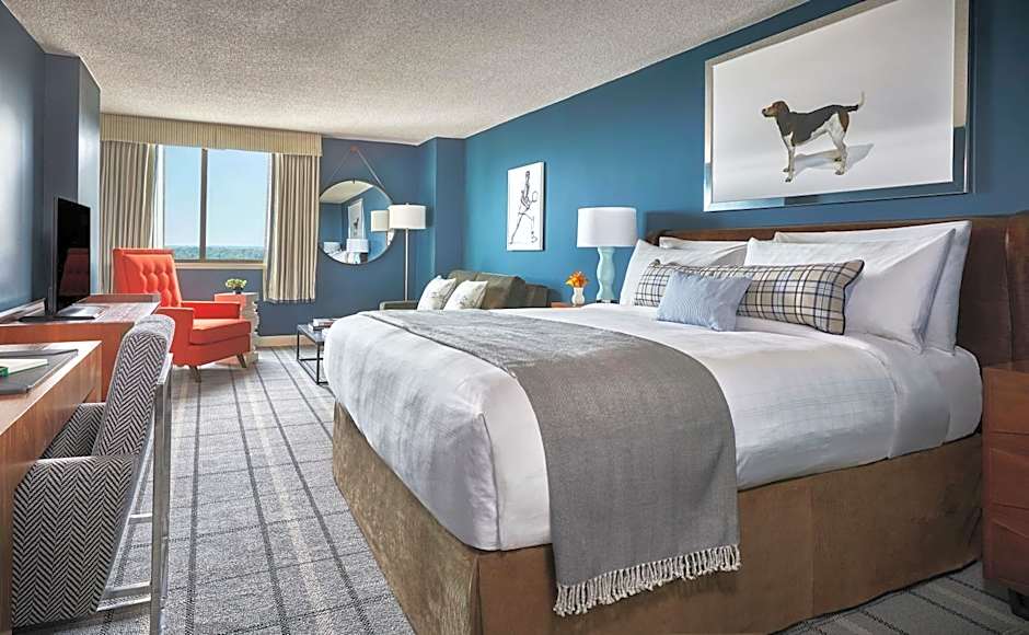 This room is fitted with a king bed, a living space with a work station and a sofa bed that can be converted into a double bed.